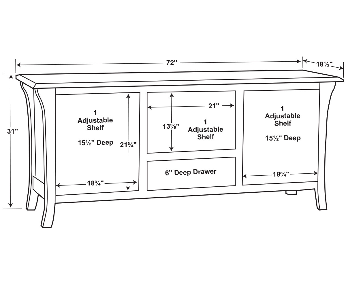 Dimensions: 72″W x 18½”D x 31″H